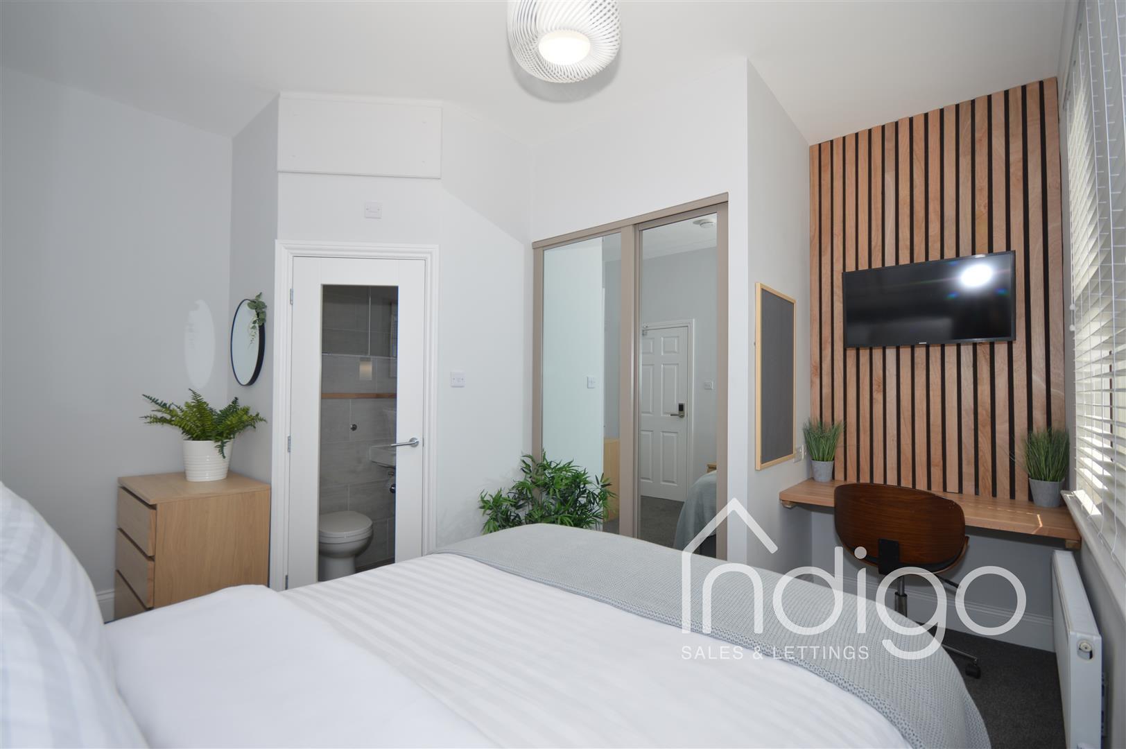 In this property you'll find 6 sophisticated bedrooms, all styled on today's fashion trends and featuring the kind of decor that wouldn't look out of place in a luxury hotel, with bags of light colours and warm woods. Currently available is Bedroom 2 - a rear facing double bedroom with bedside drop lights, flat screen TV, built in sliding mirrored wardrobe and ensuite.